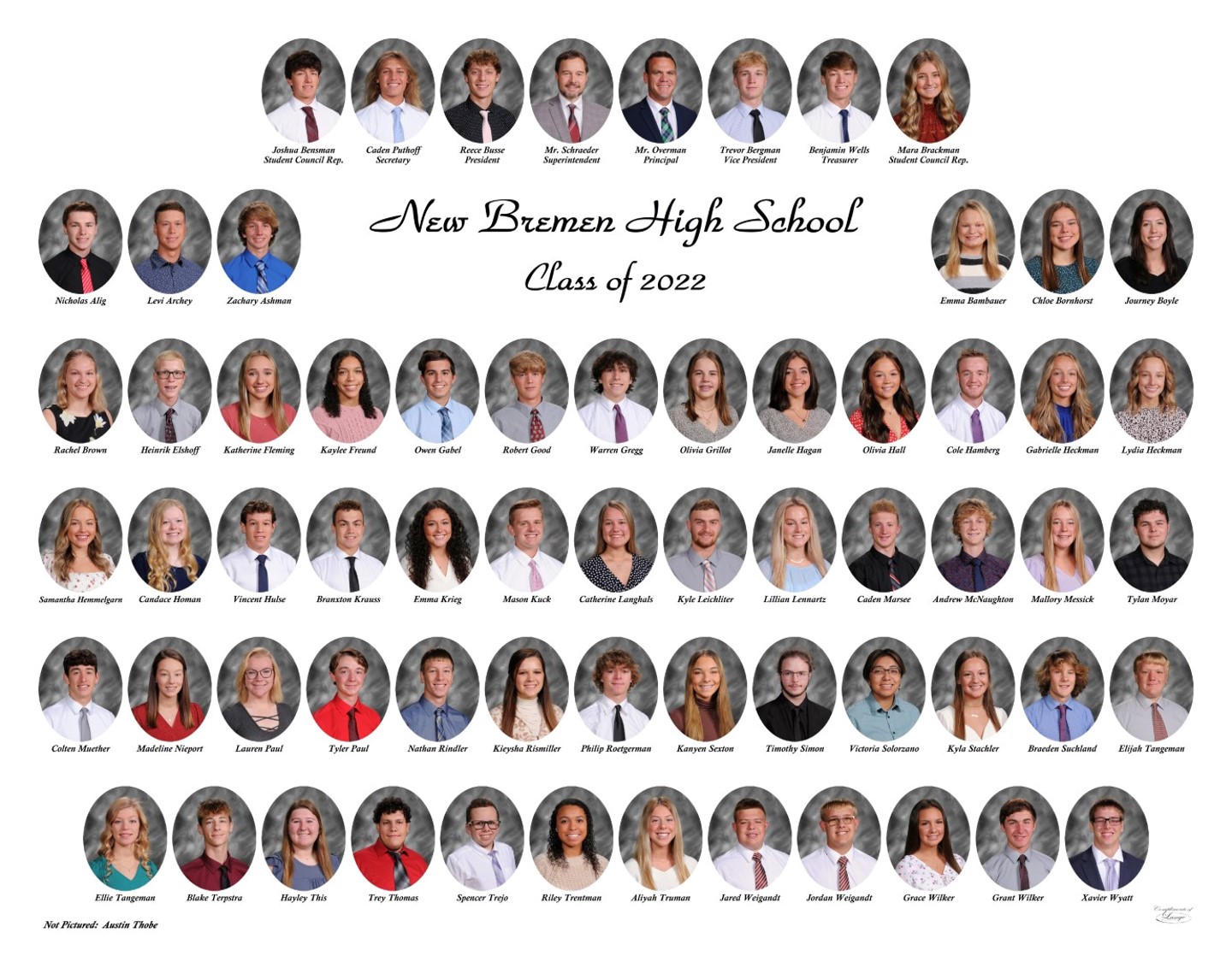 The New Bremen Historic Association, an Ohio non-profit corporation, is posting the graduation class lists and photos graciously provided by the Board of Education, New Bremen Local and the staff of the New Bremen High School. The New Bremen Historic Association has posted information on this website as a service to the citizens of New Bremen and past, present and future graduates of New Bremen High School. The New Bremen Historic Association is not responsible for the accuracy of the photos presented. These photos shall not be copied or distributed without the express written consent of the New Breme Historic Association and the Board of Education, New Bremen Local School District.