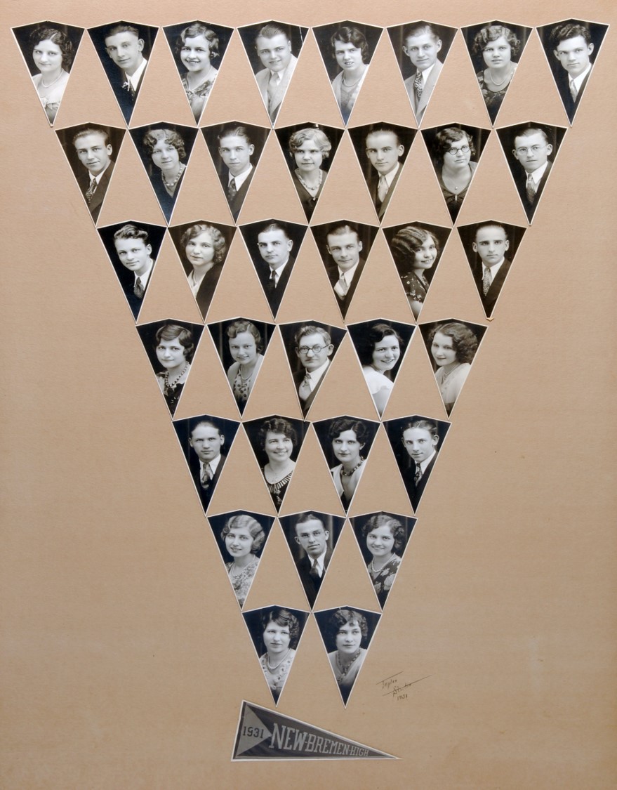 The New Bremen Historic Association, an Ohio non-profit corporation, is posting the graduation class lists and photos graciously provided by the Board of Education, New Bremen Local and the staff of the New Bremen High School. The New Bremen Historic Association has posted information on this website as a service to the citizens of New Bremen and past, present and future graduates of New Bremen High School. The New Bremen Historic Association is not responsible for the accuracy of the photos presented. These photos shall not be copied or distributed without the express written consent of the New Breme Historic Association and the Board of Education, New Bremen Local School District.