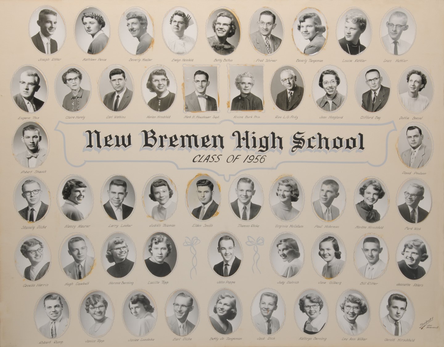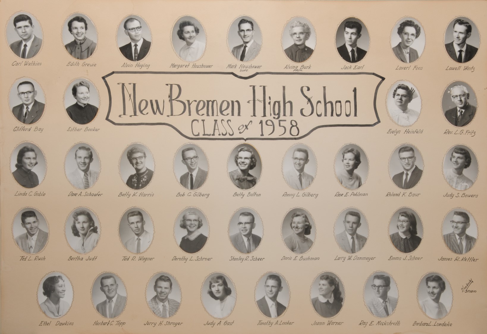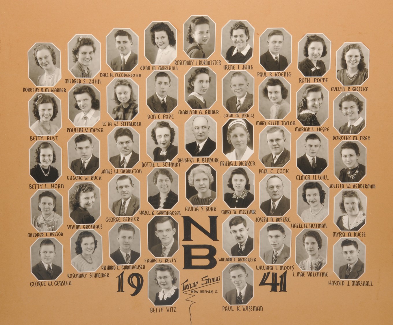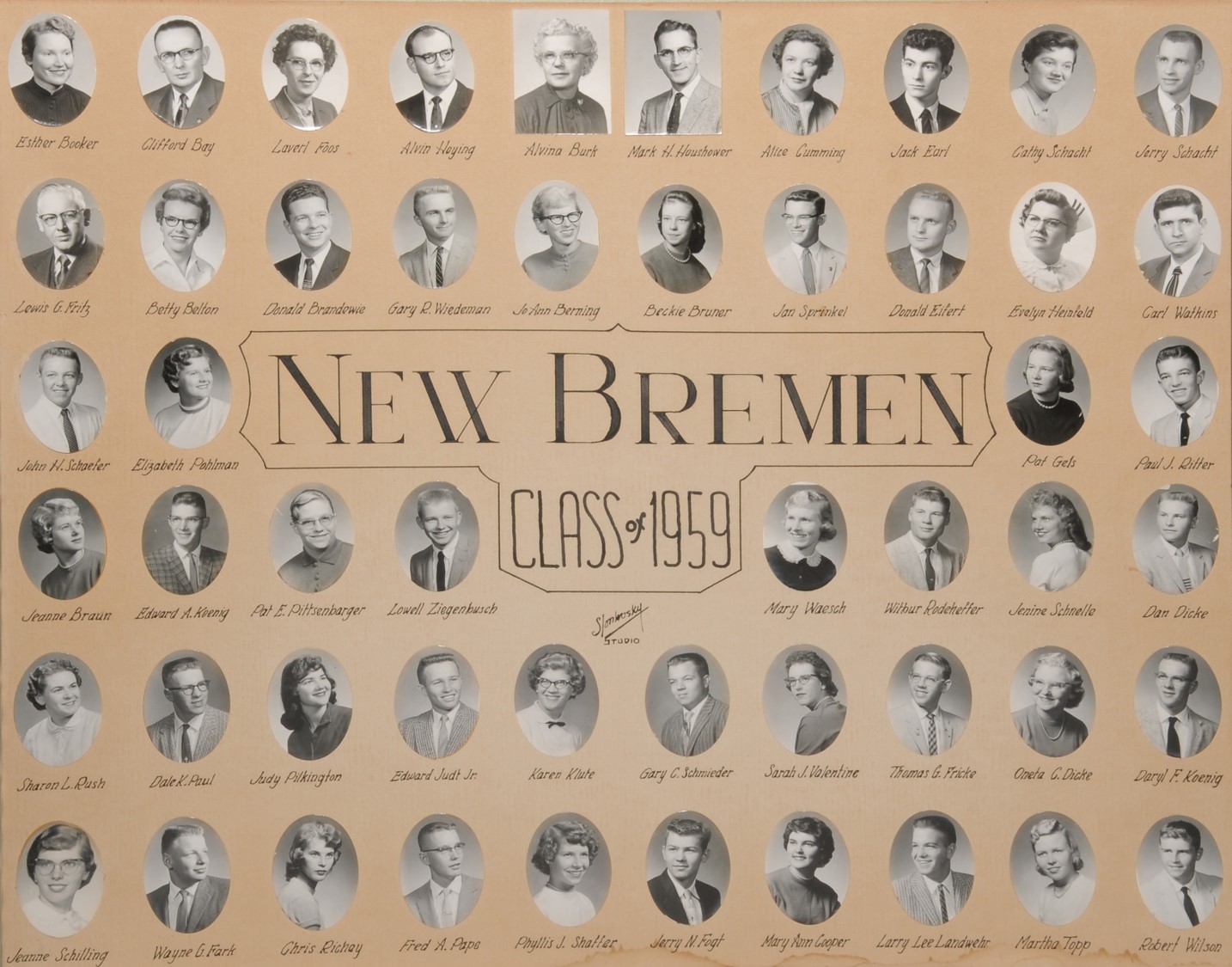 The New Bremen Historic Association, an Ohio non-profit corporation, is posting the graduation class lists and photos graciously provided by the Board of Education, New Bremen Local and the staff of the New Bremen High School. The New Bremen Historic Association has posted information on this website as a service to the citizens of New Bremen and past, present and future graduates of New Bremen High School. The New Bremen Historic Association is not responsible for the accuracy of the photos presented. These photos shall not be copied or distributed without the express written consent of the New Breme Historic Association and the Board of Education, New Bremen Local School District.