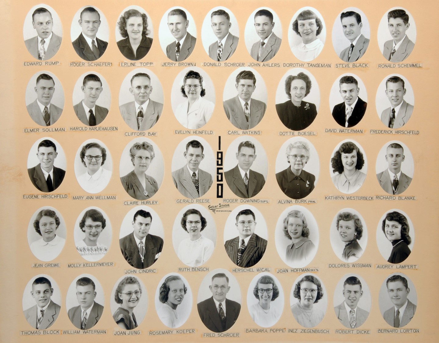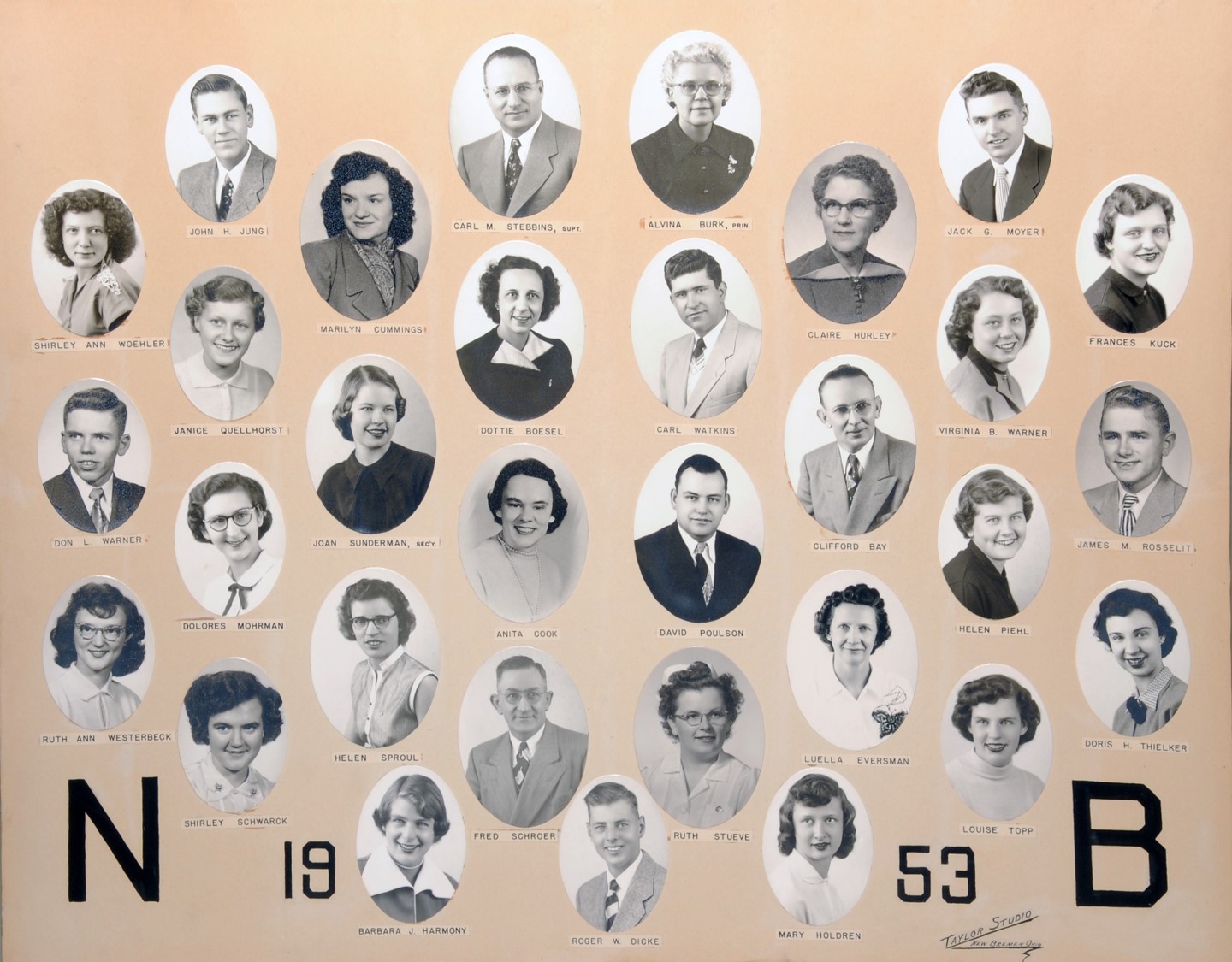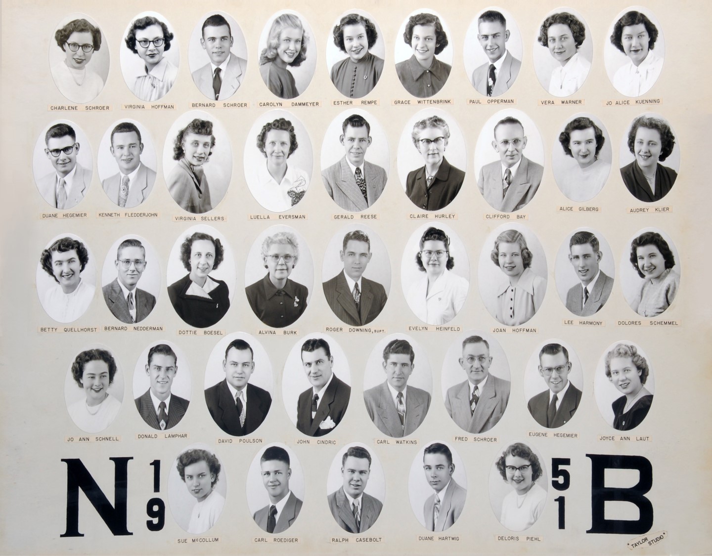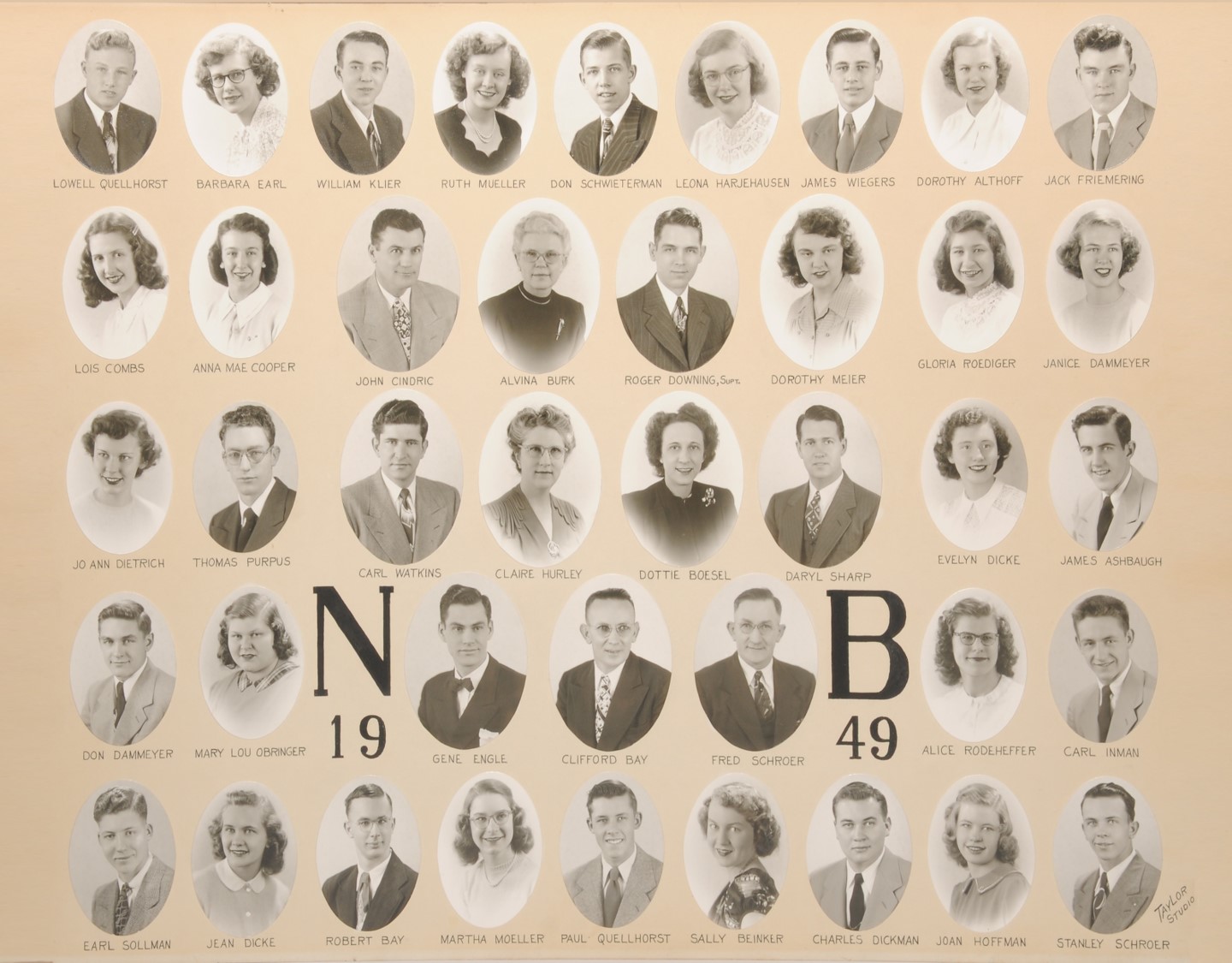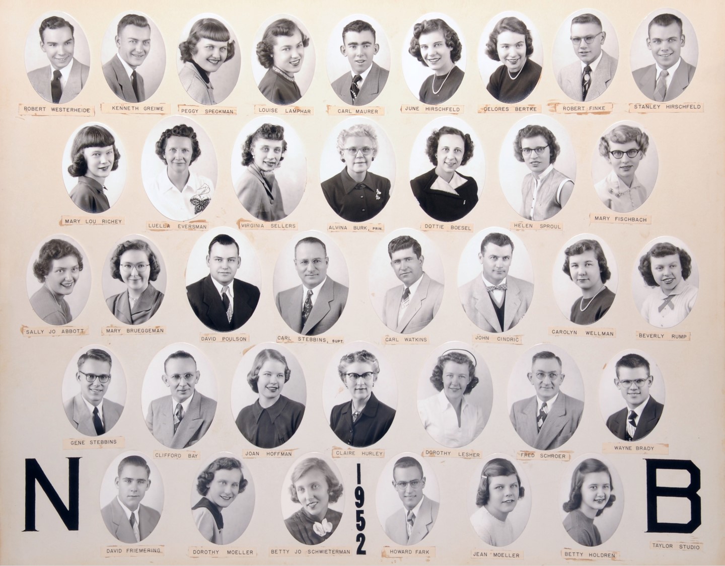 The New Bremen High School was first organized in 1879 with a three-year course which was changed to a four-year course in the fall of 1899. The following is a list of all N.B.H.S. graduates, starting with the class of 1940 up to 1959. We have attempted to identify the students as to who their parents are for genealogical purposes. There are some lapses. If you have any additional information to add (or corrections to make), please contact us.