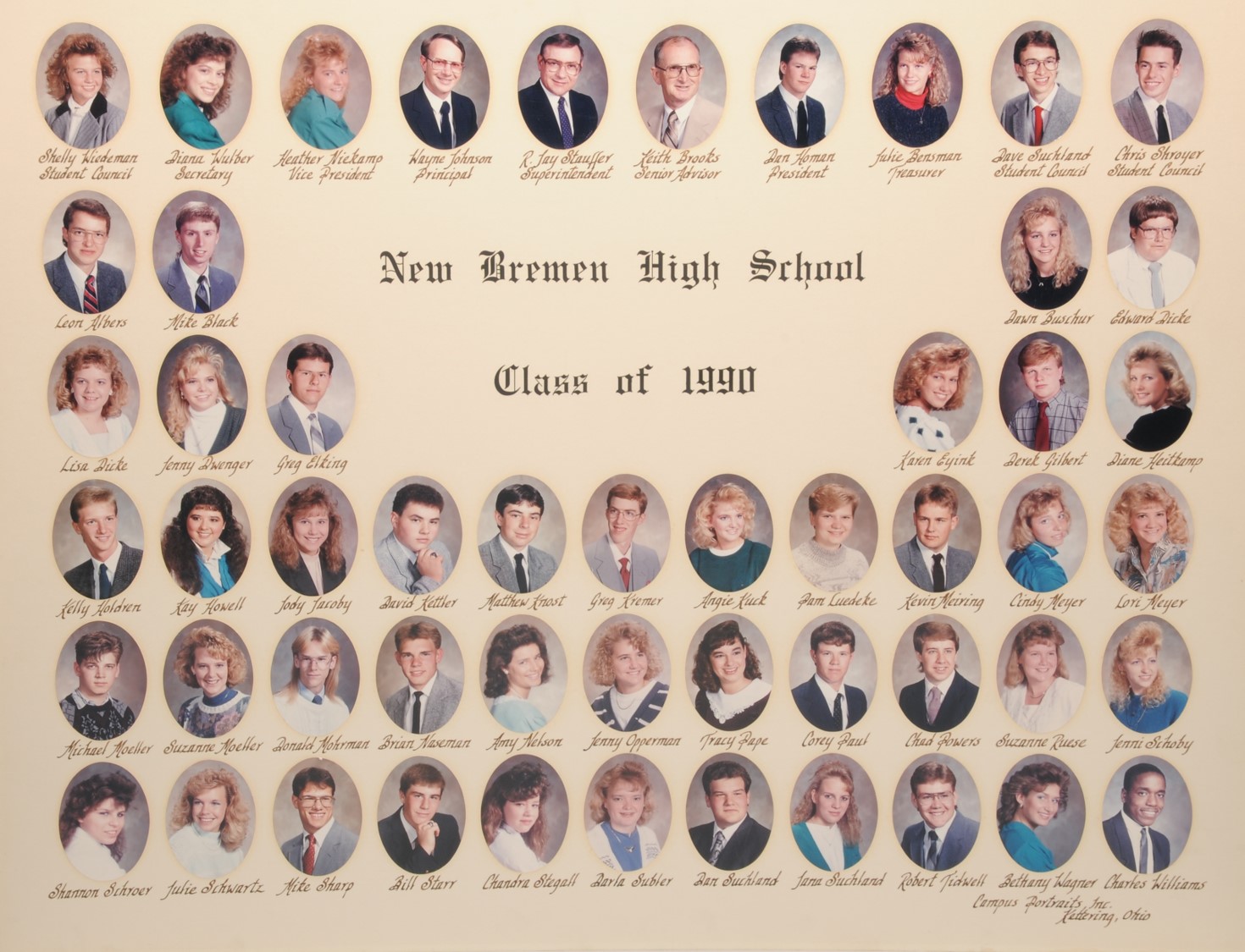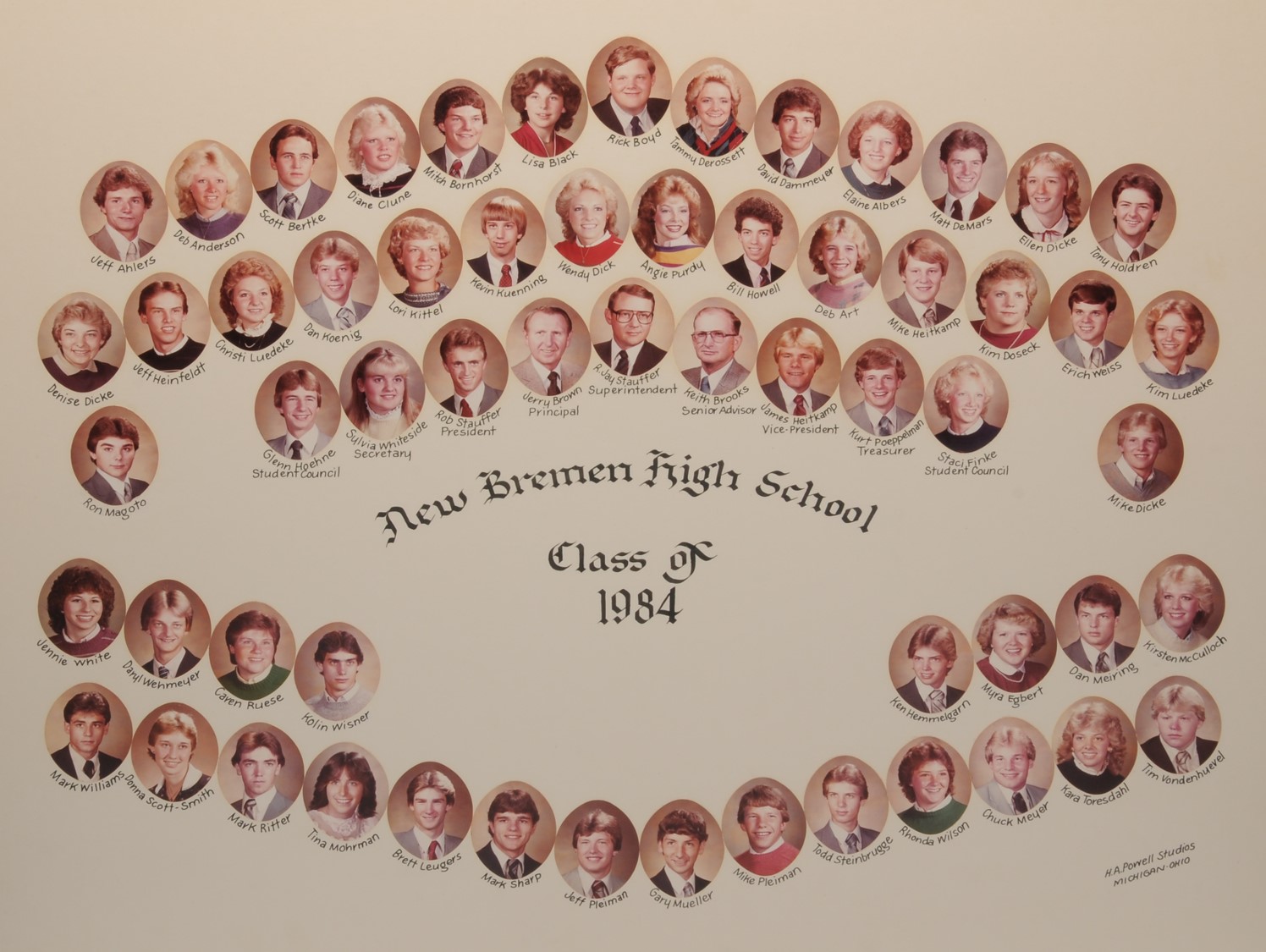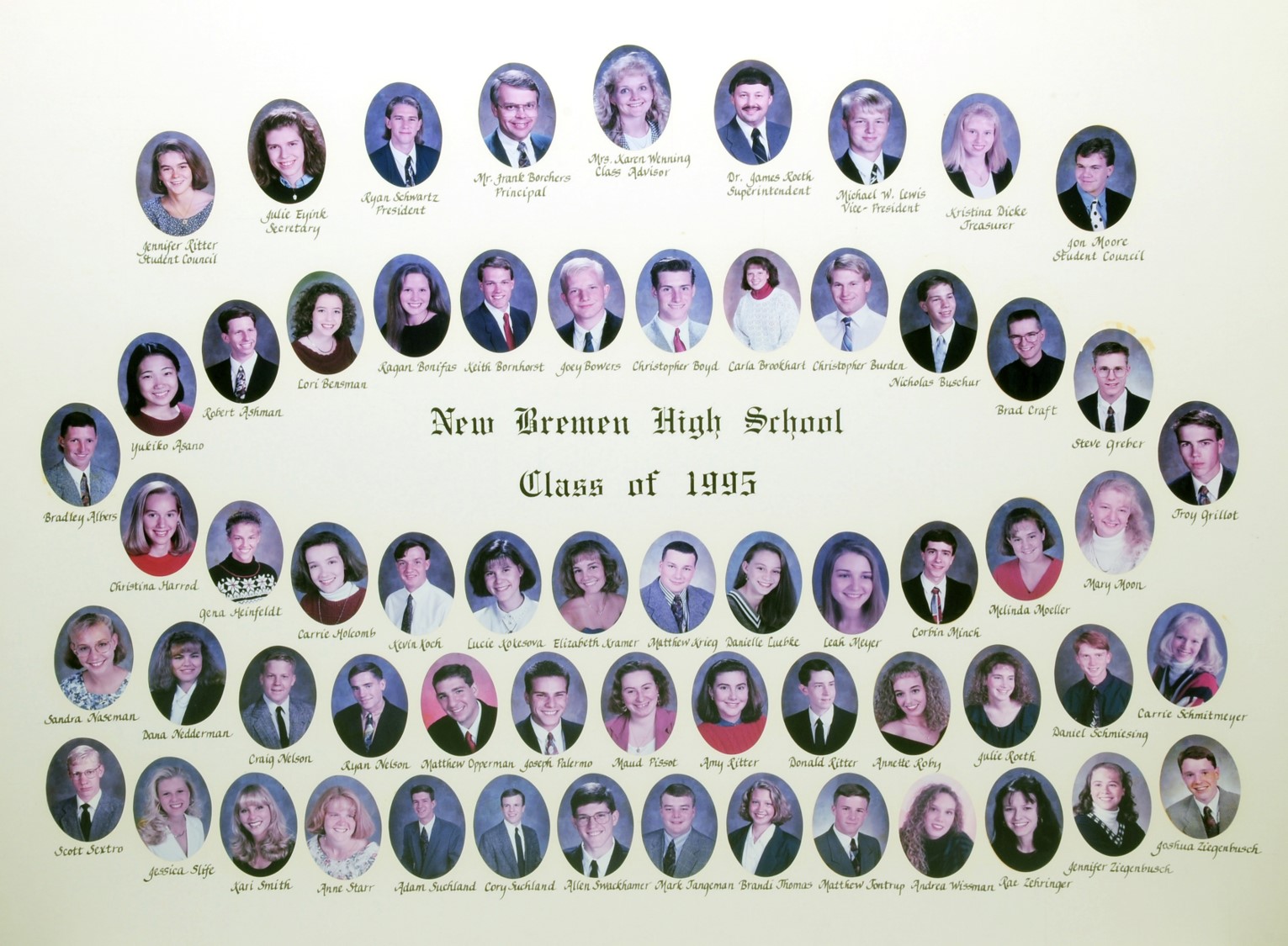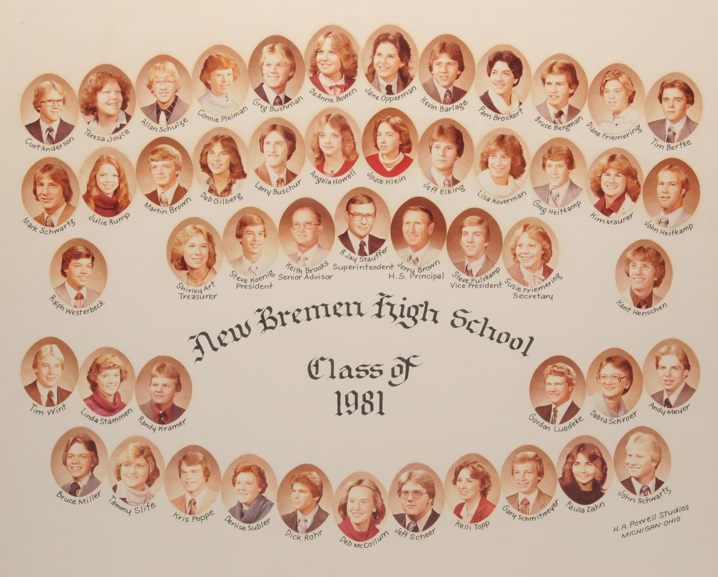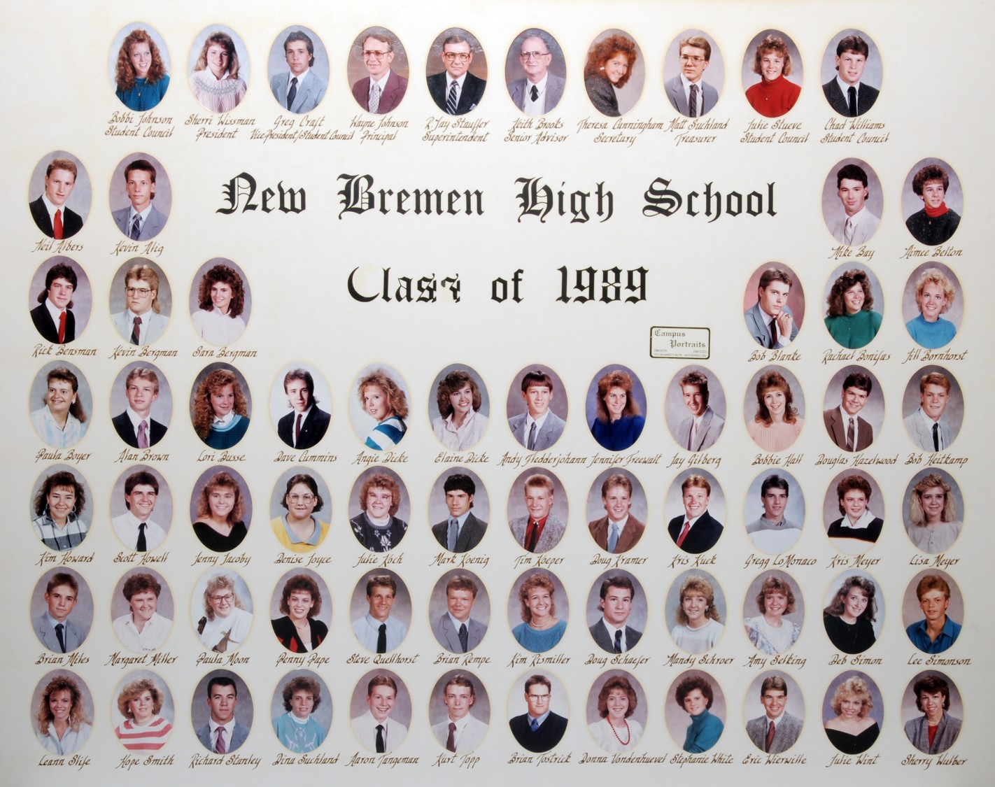 The New Bremen Historic Association, an Ohio non-profit corporation, is posting the graduation class lists and photos graciously provided by the Board of Education, New Bremen Local and the staff of the New Bremen High School. The New Bremen Historic Association has posted information on this website as a service to the citizens of New Bremen and past, present and future graduates of New Bremen High School. The New Bremen Historic Association is not responsible for the accuracy of the photos presented. These photos shall not be copied or distributed without the express written consent of the New Breme Historic Association and the Board of Education, New Bremen Local School District.